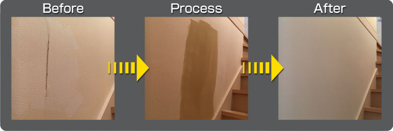 ⚫︎階段・壁ボード沈み跡補修,及びクロス貼り替え工事![]() |